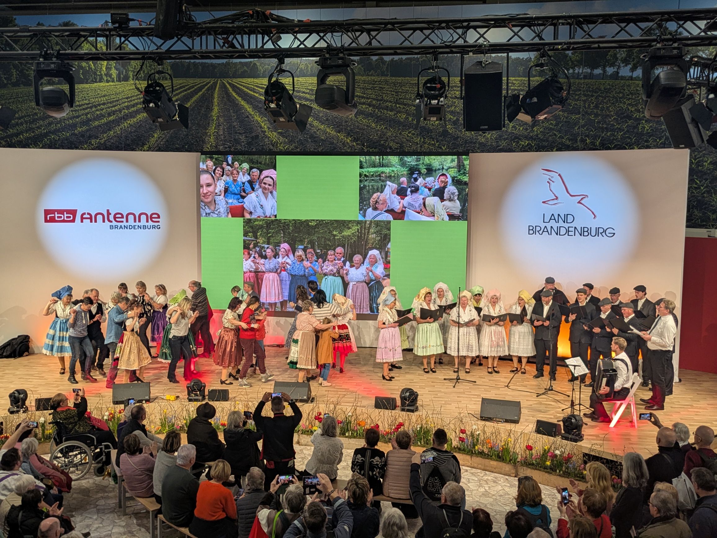 Am Donnerstag, 22. Januar 2026 gestaltete ab 13:30 Uhr der Spreewaldverein e.V. das Bühnenprogramm in der Brandenburg-Halle. Mit der Trachtentanzgruppe „Spreeperlen“, vom Heimatverein Döbbrick/Maiberg-Skadow e.V. wurde der traditionelle Spreewald präsentiert. Moderner und zugleich ruhiger wurde es später mit der vierköpfigen Lübbenauer Band „The Bluesbeards“ in ihrer unplugged-Besetzung. Ergänzt wird das Bühnenprogramm durch verschiedene Interviewgäste wie Produzent*innen und Engagierte aus der Region, die Informatives und Interessantes von Ihrer Arbeit zu erzählen wissen.
