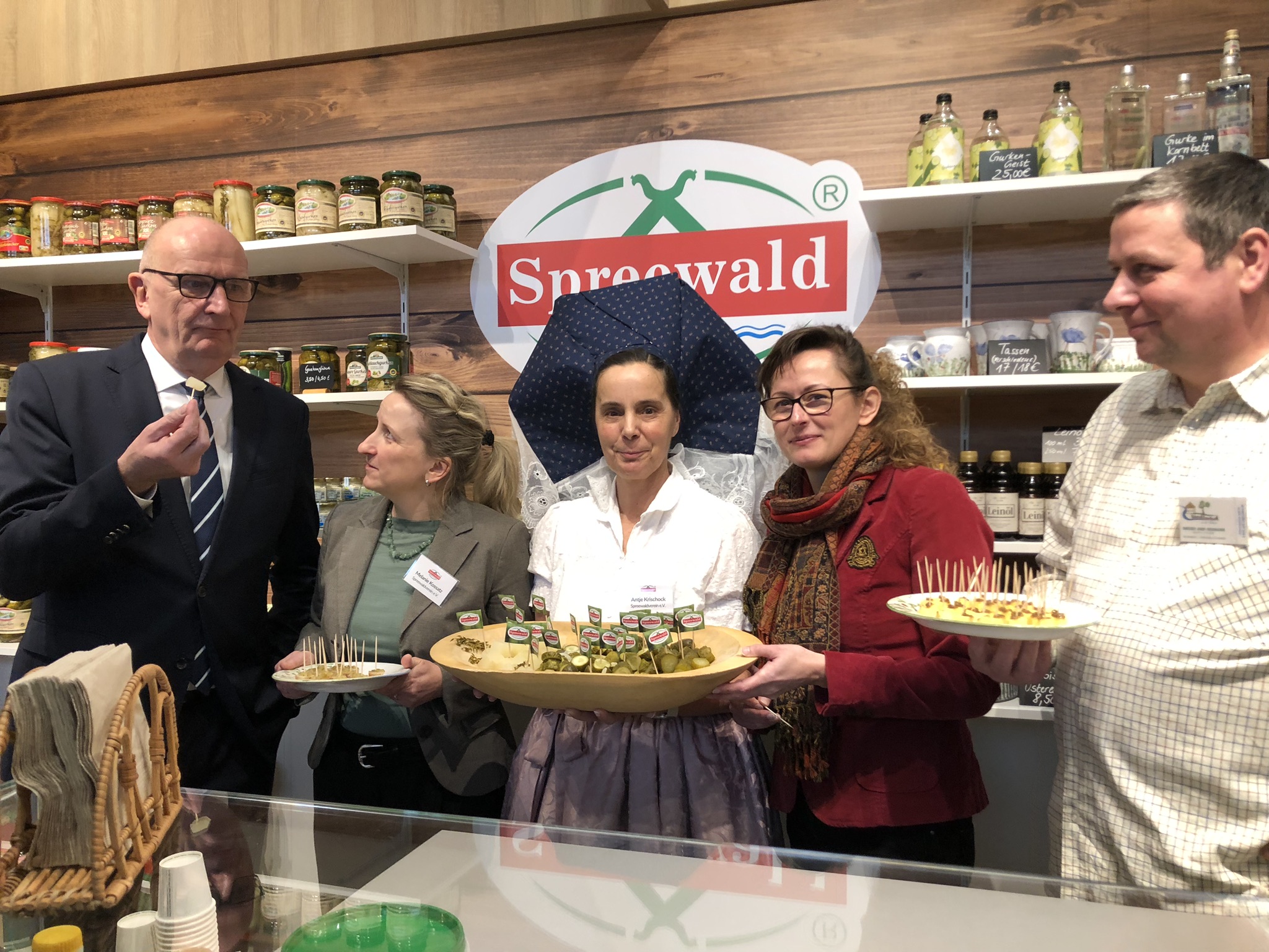 Alle Produkte am Stand tragen das Zeichen der Dachmarke Spreewald. Mit über 2.000 zertifizierten Produkten von 135 Unternehmen steht sie seit rund 30 Jahren für geprüfte Qualität aus der Region – seit 30 Jahren. Als gemeinsame Plattform möchte der Spreewaldverein e.V. regionalen Erzeugnissen mehr Sichtbarkeit verschaffen und Lust auf regionalen Genuss machen. Vergeben wird die Dachmarke ausschließlich an Hersteller, die im Wirtschaftsraum Spreewald mit überwiegend regionalen Zutaten und Rohstoffen produzieren.