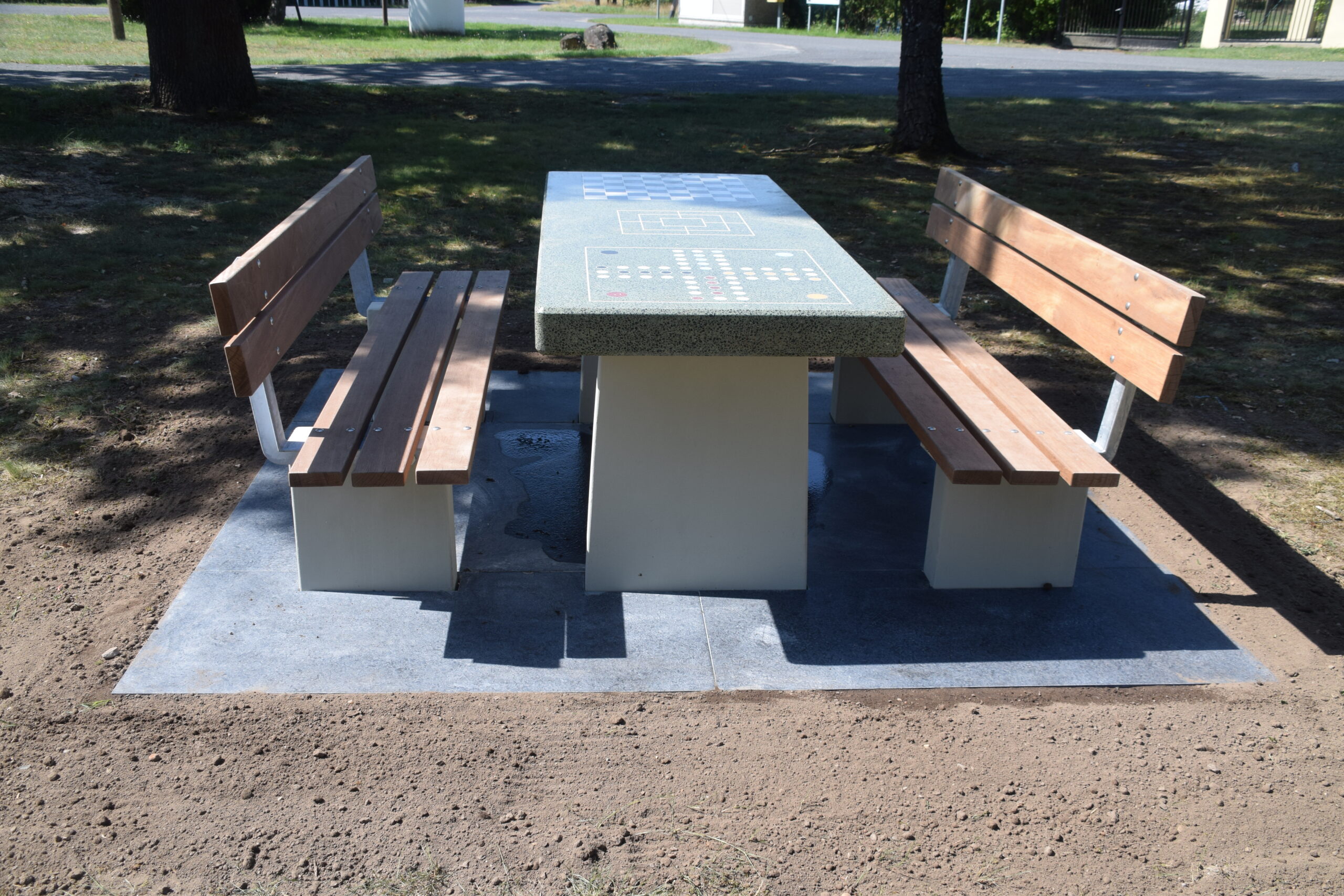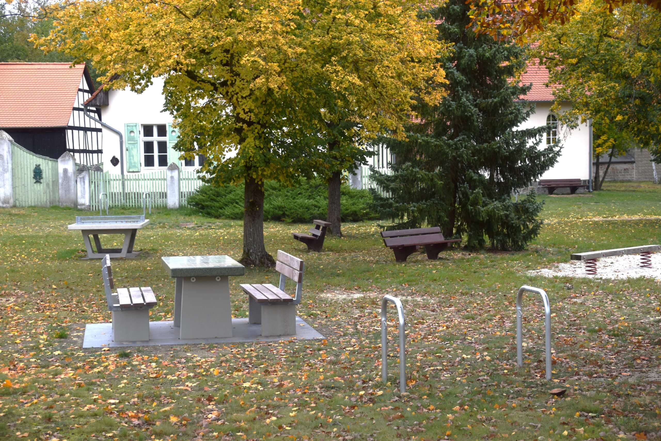 Eine neue Outdoor-Tischtennisplatte, eine Sitzgruppe, in deren Tisch 3 Brettspiele eingearbeitet sind, und Jugendbänke sorgen dafür, dass in der Ortsmitte wieder mehr Begegnung stattfindet – zwischen Jung und Alt, Einheimischen und Gästen.
